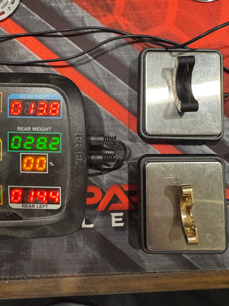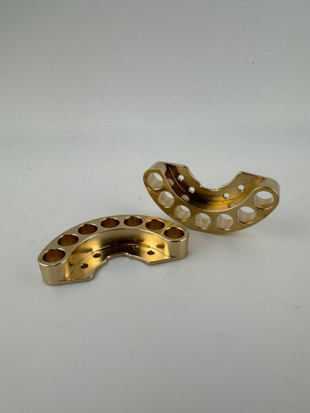 The brass version of the Universal Hanger. Made to fit our Outlaw 1.8 & Outlaw 1.3 wheels. They will bolt right up to all variants of the Low Blow Knuckles. For rear axle use you'll need the SCX24 rear hanger bracket. Can also be used with Samix SCX24 knuckles with our required bracket. Using our slugs, they weigh a hair over 14g each fully loaded. Slugs are a PRESS FIT.